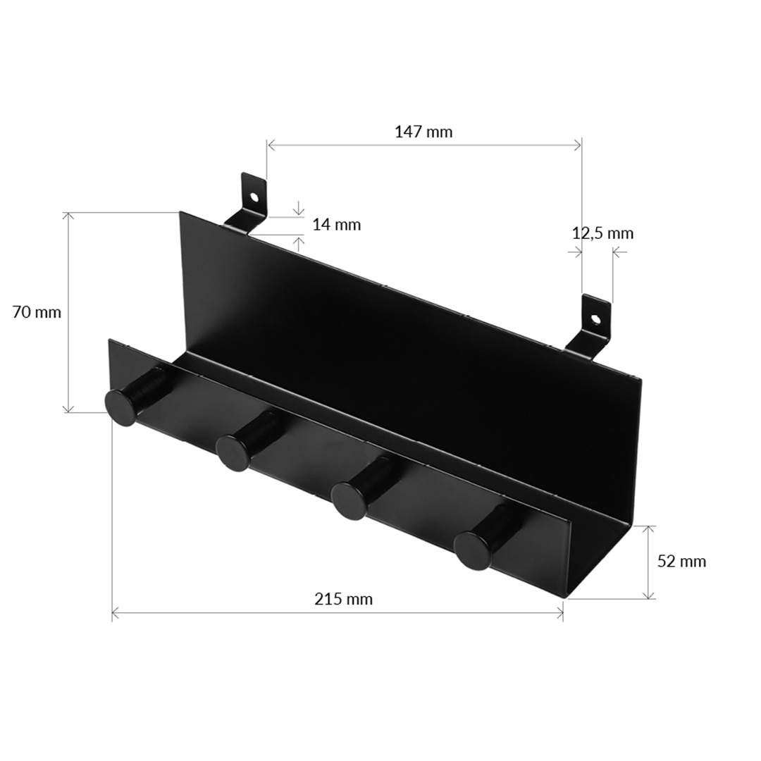 Black metal shelf with 4 knobs